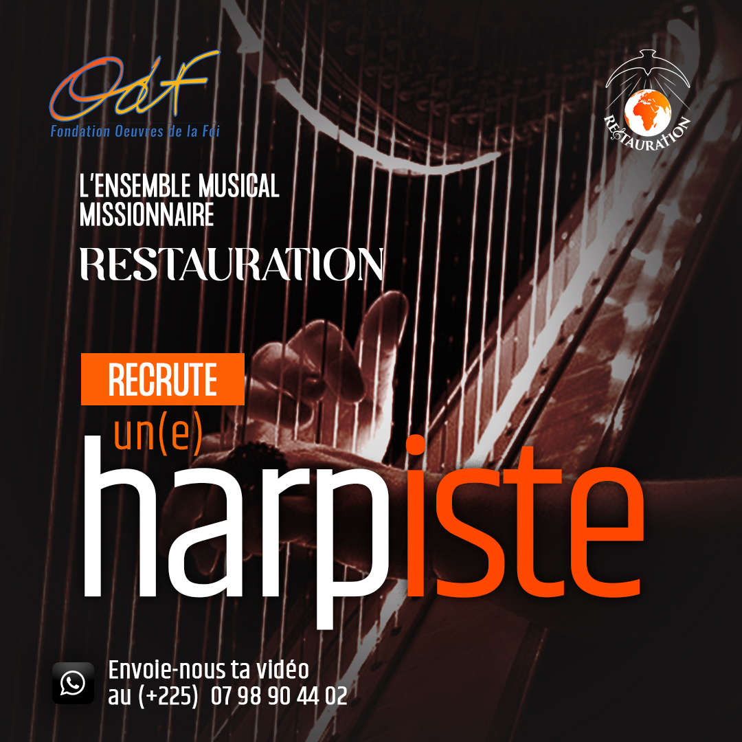 Assoiffés d'une véritable Adoration à l'Éternel Dieu, ne ratez pas ce moment exceptionnel qui sera conduit par l'ensemble musical missionnaire RESTAURATION et la Fondation Œuvres de la Foi (ODF).