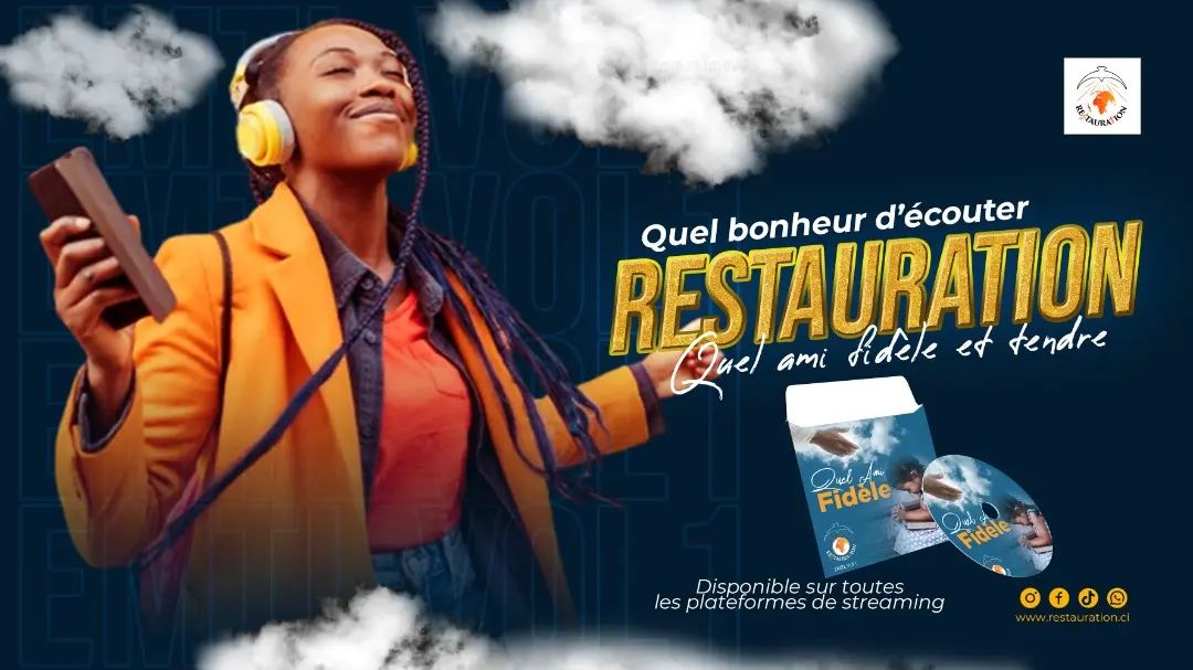 Hello Hello ! Demeurez pleinement bénis peuple racheté de l'Eternel et, vous tous nos bien-aimés dans le monde. Nous voudrions vous remercier du fond du cœur de l'intérêt que vous avez manifesté pour la sortie officielle du groupe Restauration, le Vendredi 22 Juillet 2022. Et, nous vous annonçons également que notre premier album QUEL AMI FIDÈLE est à présent disponible sur toutes les plates-formes de streaming et sur YouTube. À savourer sans modération ?. Dieu vous bénisse abondamment.
